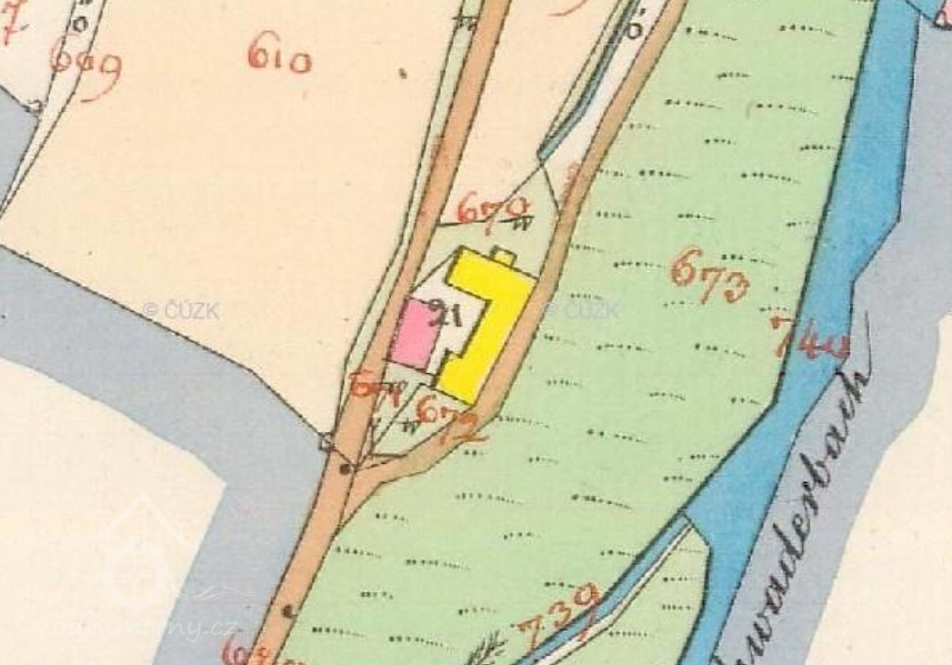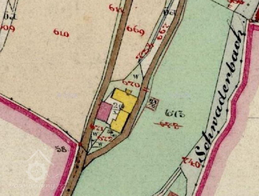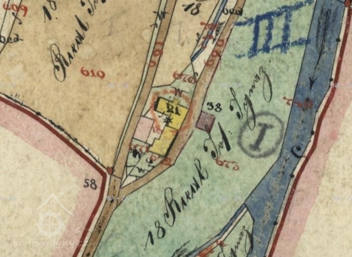 Popis1930 mlýn: 1 kolo na svrchní vodu, hltnost 0,09 m3/s, spád 6,2 m, výkon 4 HP