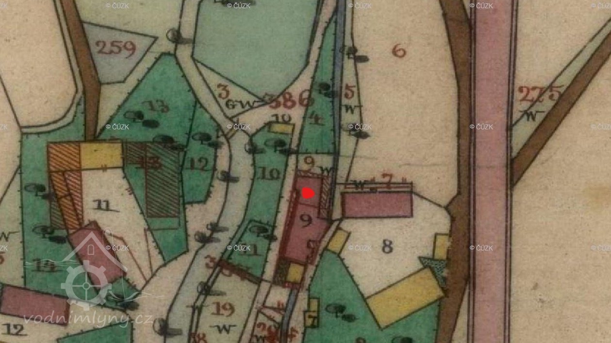 Zobrazen na mapě I. vojenského mapování.