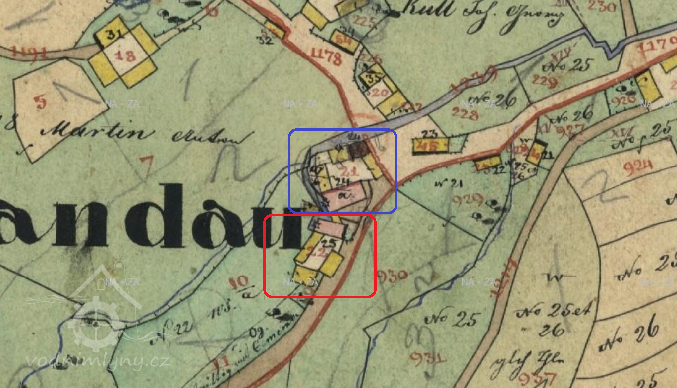 Popis1930: 1 kolo na svrchní vodu, hltnost 0,07 m3/s, spád 3,6 m, výkon 2,2 HP