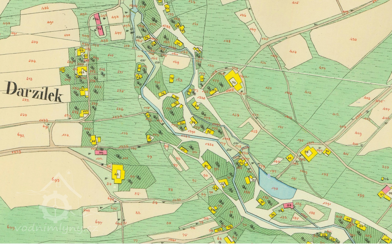 Rybník na mlýnem, náhon i odtokový kanál zasypány.