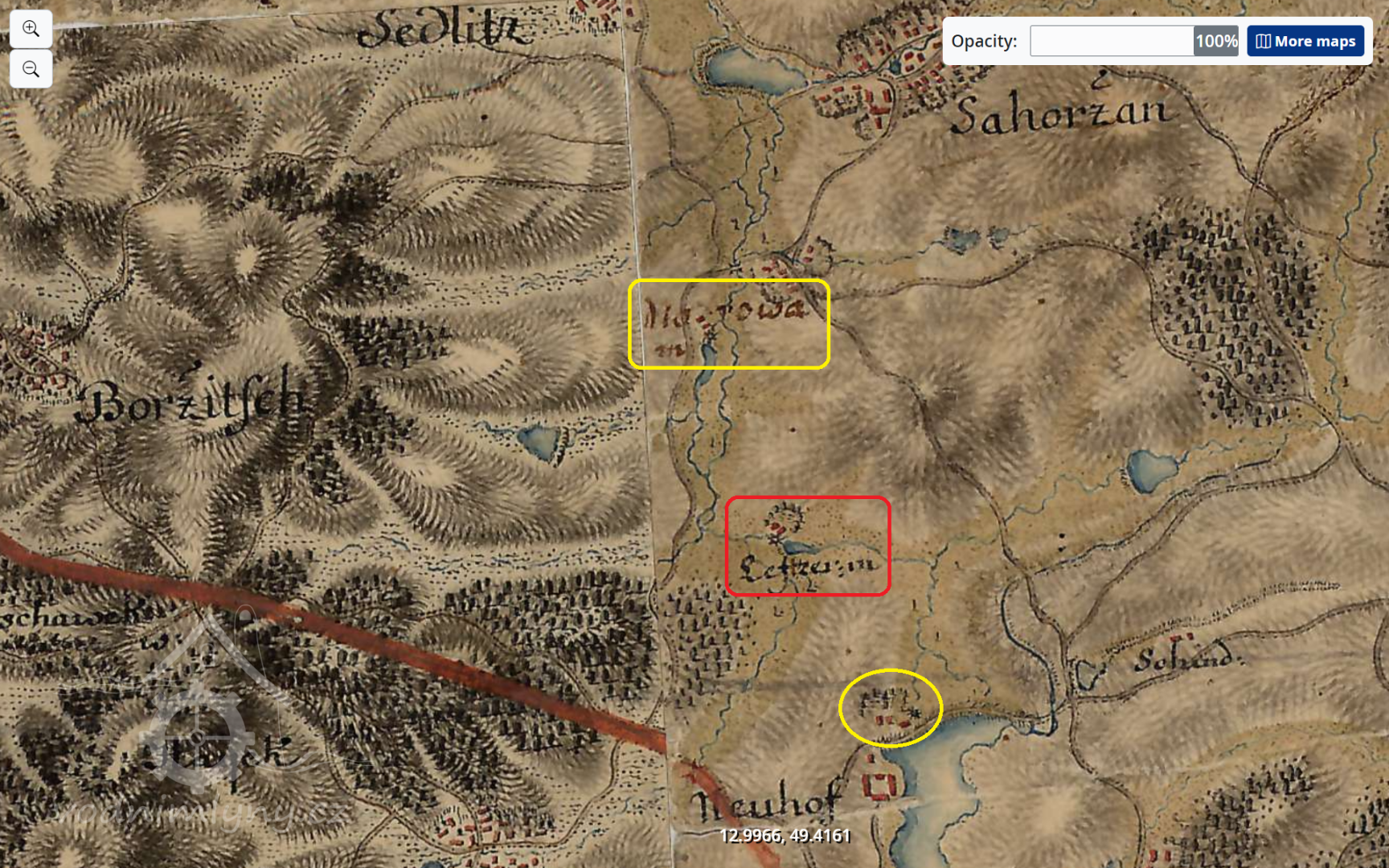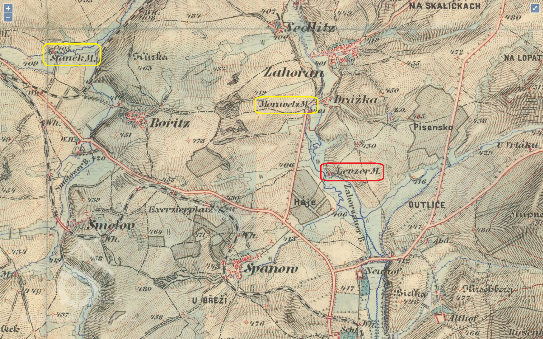 2,5 km jižně od kaple P.Marie v Zahořanech