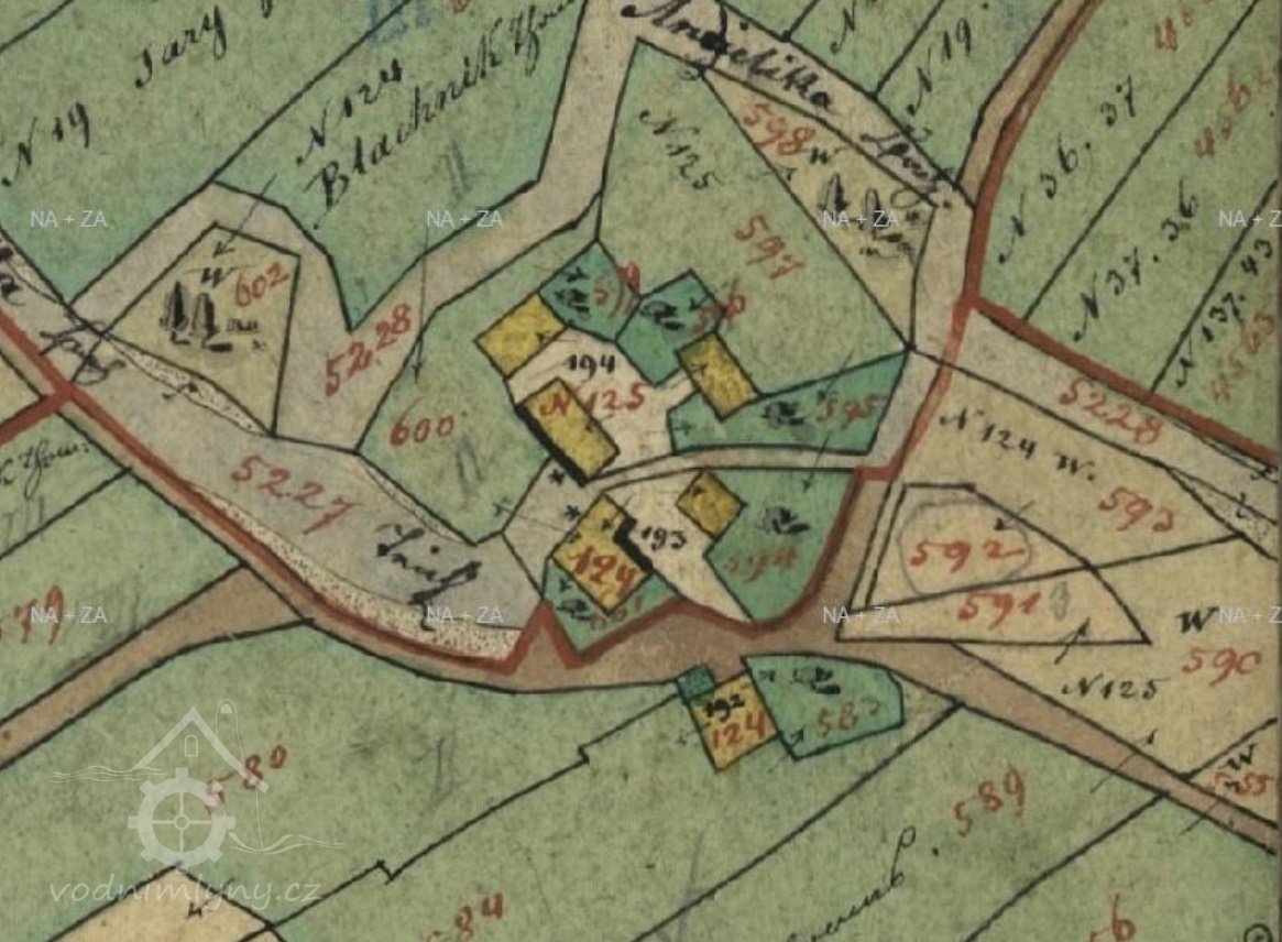 Mlýn na samotě, složený ze dvou čísel popisných na protilehlých stranách dnes již zaniklého náhonu (možná se původně jednalo o dva bezprostředně sousedící mlýny, popř. mlýn a samostatnou pilu).
