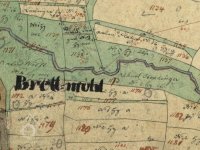 Mlýn je zachycen již na mapě I. voj. mapování, označen jako Gey mühle. V roce 1826 vlastní mlýn označovaný jako Brett-mühl Anton Wolfl.