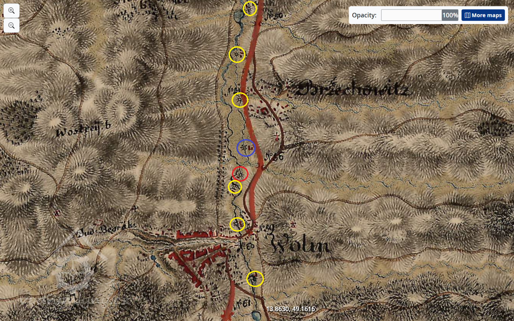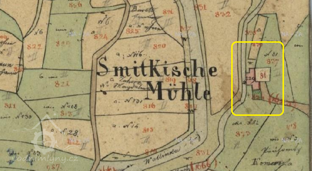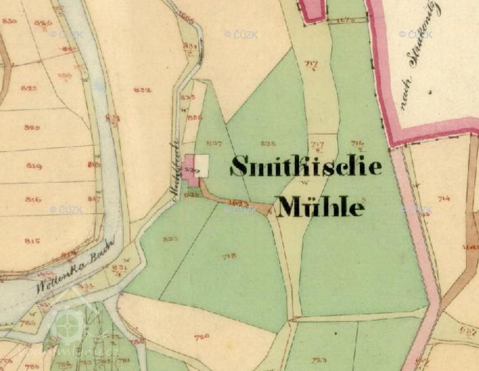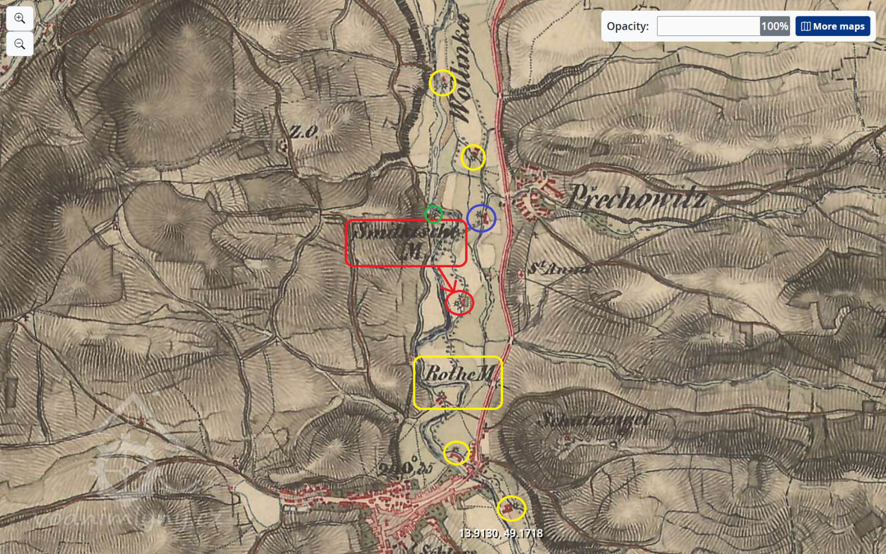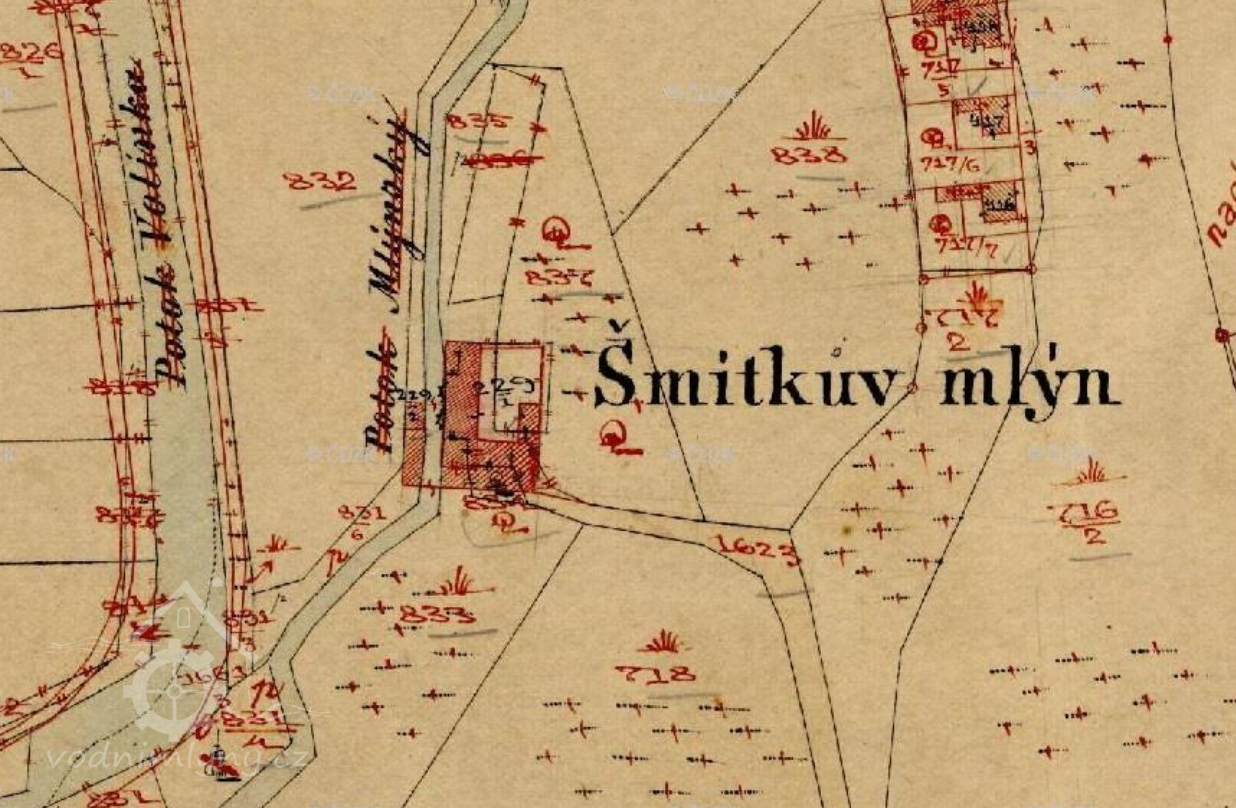 Na mapě II. vojenského mapování mlýn zakreslen správně, avšak popiska se dostala až k Podveskému mlýnu v Přechovicích.