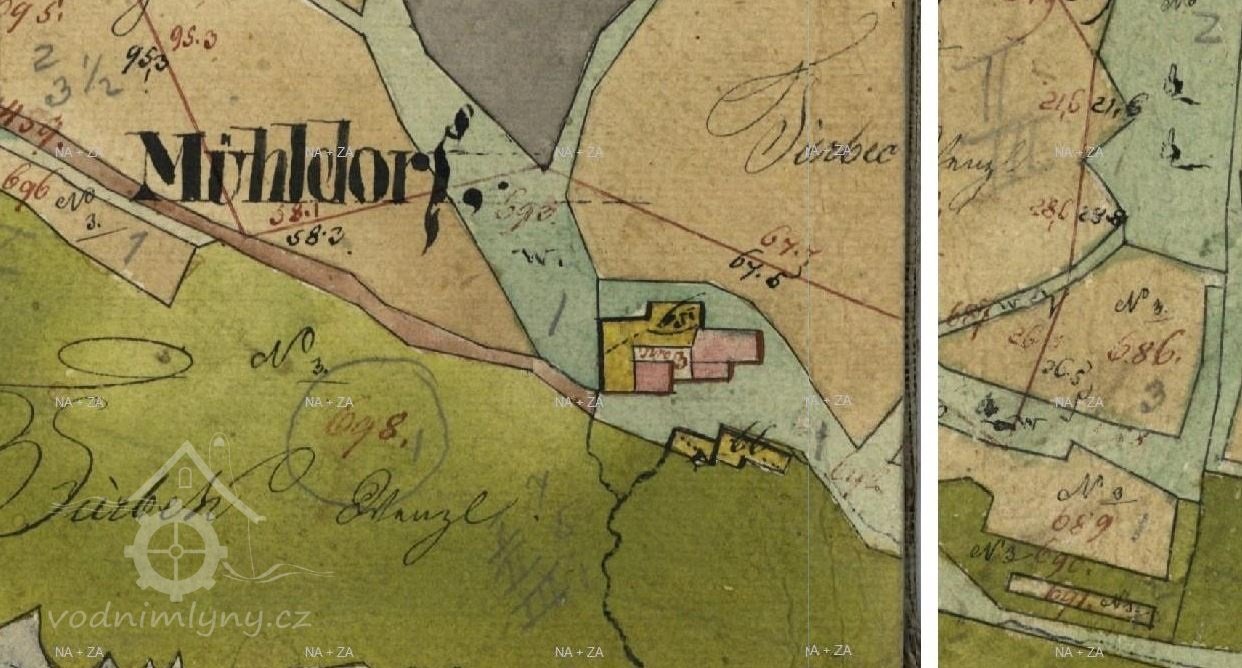 Mlýn je zachycen na mapě I. voj. mapování.