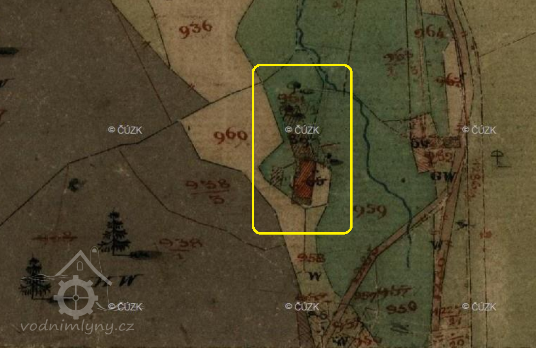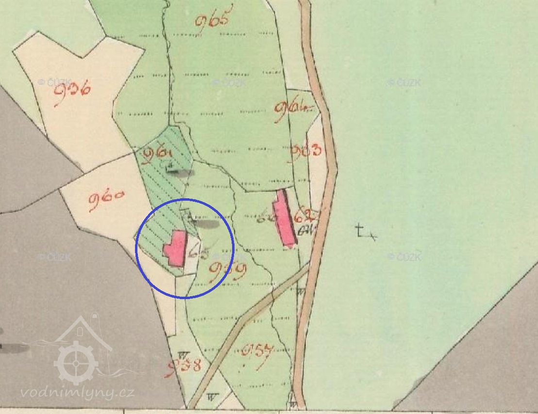 Popis1930: 1 kolo na svrchní vodu, hltnost 0,1 m3/s, spád 5,86 m, výkon 6 HP