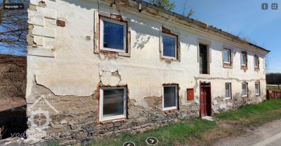 Protější hospodářská budova ve zříceninách.
