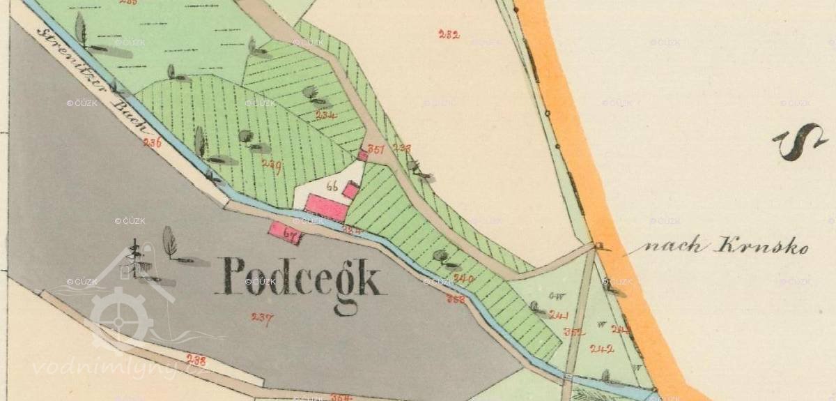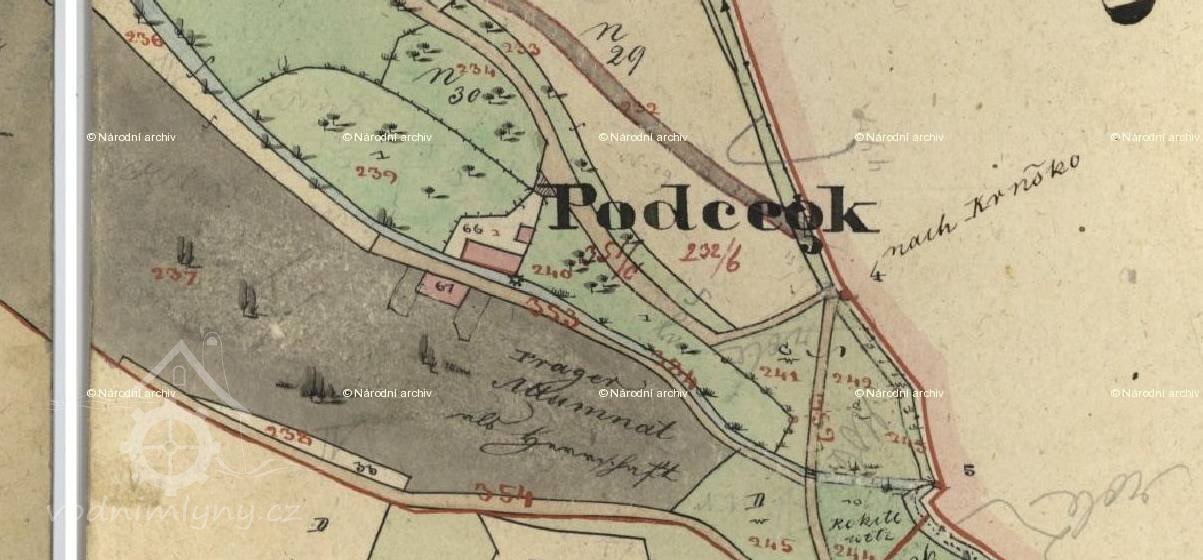 V roce 1876 se na mlýn osazoval vodní cejch. V nájmu zde tehdy byl Václav Kučera. V 2. pololetí 19. století byl však mlýn zadlužen a dostal se do exekuce. V exekuční dražbě ho v roce 1878 koupila Občanská záložna v Dolním Cetně, která pak hledala na mlýn kupce. O nabídce se dozvěděl František Dědina, sedlák z Vinařic, a se svými dvěma syny si jel mlýn prohlédnout. Téhož roku (28. srpna 1878) František Dědina mlýn koupil za 26 tisíc zlatých a nastěhoval se sem s rodinou, která obsahovala 9 dětí. Když se 15. září 1878 nastěhoval do mlýna v Podčejku, byla tu „měřičná truhla se třemi velkými příhradami: první na 8 korců žita, druhá na 4 korce ječmene a třetí na 2 korce pšenice“. A za několik týdnů se mlynář musel pustit doprav, chtěl-li, aby mlýn byl plně provozuschopný. František Dědina se staršími syny mlýn uklidili a opravili, vyčistili a opravili také náhon a vantroky. Na mlýně zůstal stárek, práci mládka vykonával syn Josef. V té době měl mlýn 2 vodní kola o průměru 3,5 m, která poháněla 2 česká složení s pískovcovými mlecími kameny. František dědina nechal v roce 1879 jeden mlecí kámen nahradit novým francouzským z křemene. Tím se zvýšila výkonnost mlýna a zlepšila se kvalita mouky. (MH)