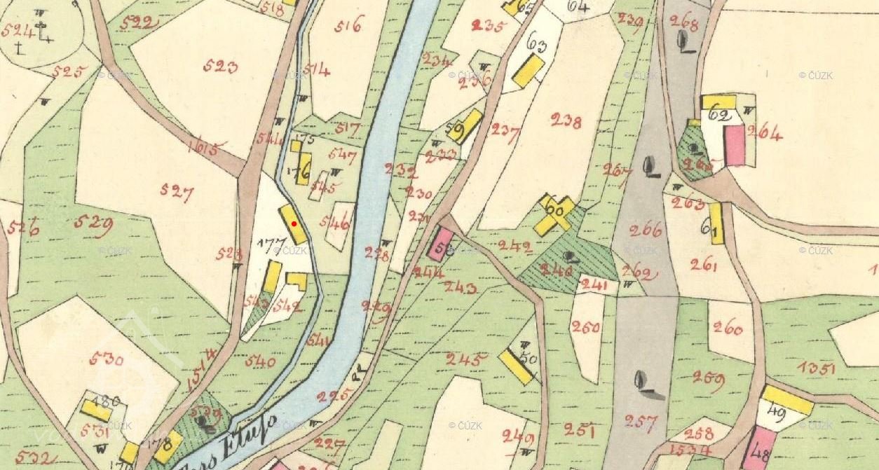 Starý mlýn, na jehož místě byla v 19. století postavena železárna, později nahrazena dřevozpracujícím podnikem.