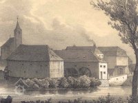 moučných 8, pila o jednom rámě jedna, slupě jedna. Platívalo se nájmu pšenice 10 strychů, žita 180 strychů, ječmene 35 strychů, prachu půdního 30 strychů“.