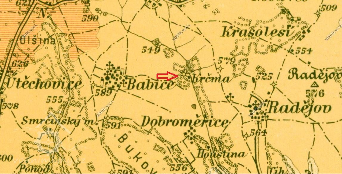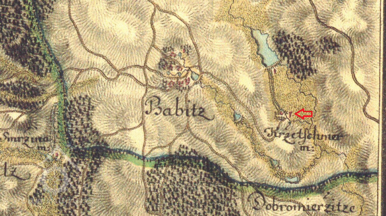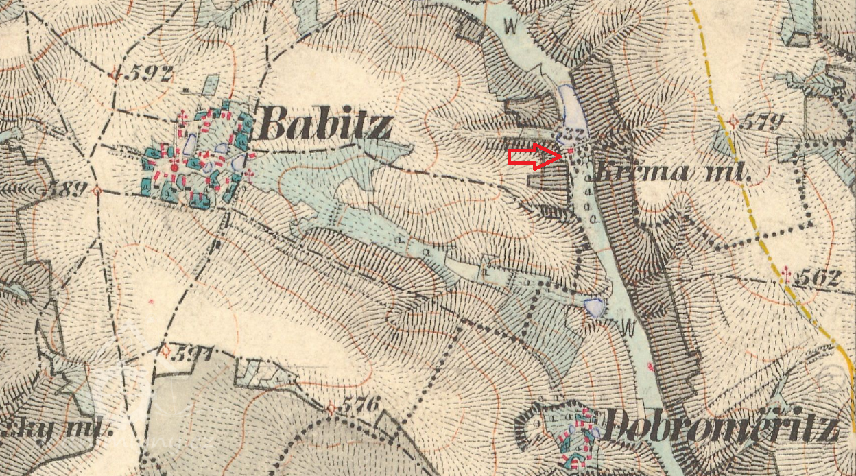 Mlýn je zachycen již na mapě I. voj. mapování, na které je zakreslen o něco níže pod rybníkem, jestli změnil polohu mlýn, posunula se hráz rybníka, nebo se jedná o nepřesnost na mapě není jisté. Mlýn sloužil především mlečům z Babic.