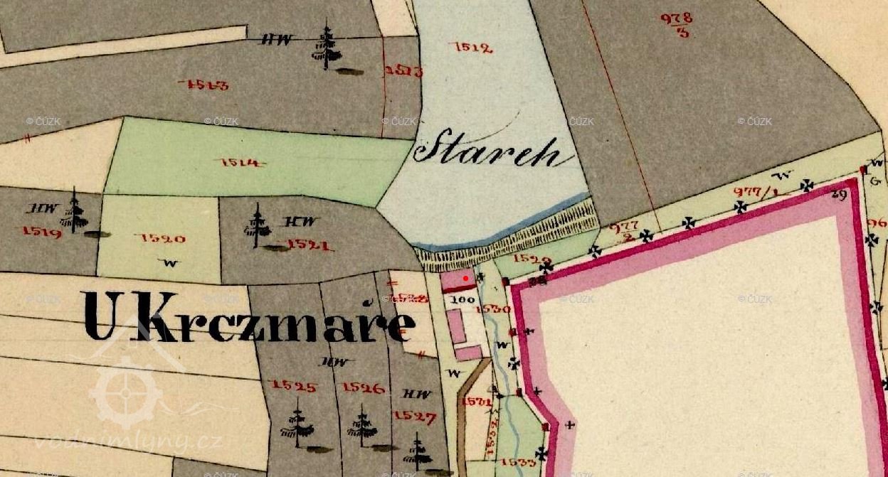 V roce 1837 mlýn vlastní J. Cžikhart (Čikhart)