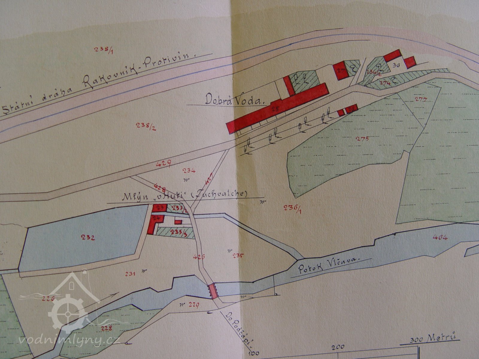 Avšak v zápisu pro vodní knihu z roku 1888 se dozvídáme, že zde pracoval mlýn s jedním českým složením a kolem na střední vodu. Vodní kolo mělo 3,40 průměr a šířku 1,30 m. Mlýnský kámen měl průměr 90 cm.