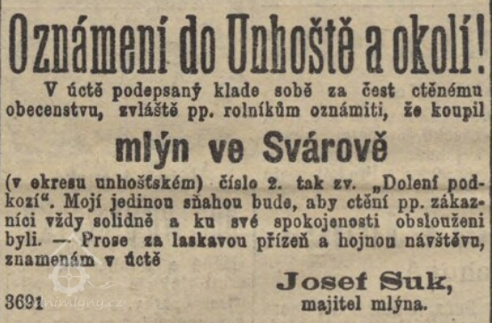 1893 koupil mlýn Josef Suk. (RR)