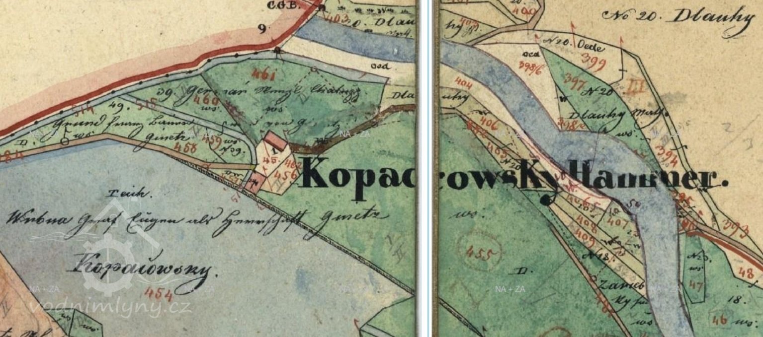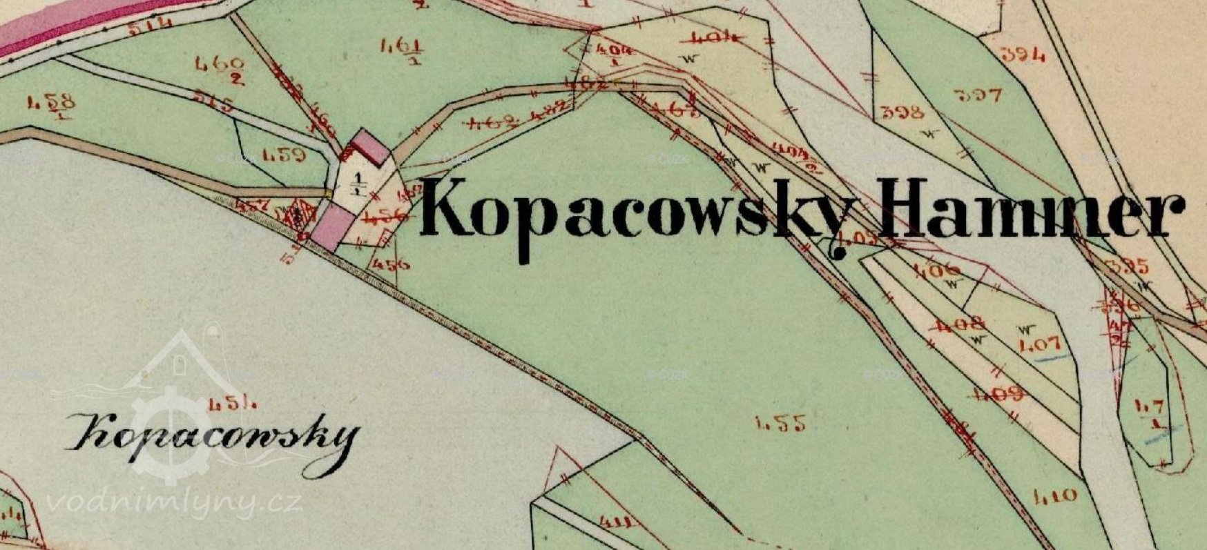 Zrušený Kopáčovský hamr sloužil od roku 1867 po krátkou dobu jako mlýn, poté přeměněn na hájovnu. Neudržovaná budova stržena v roce 1962.