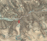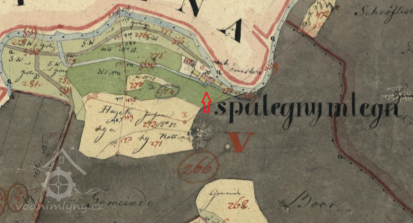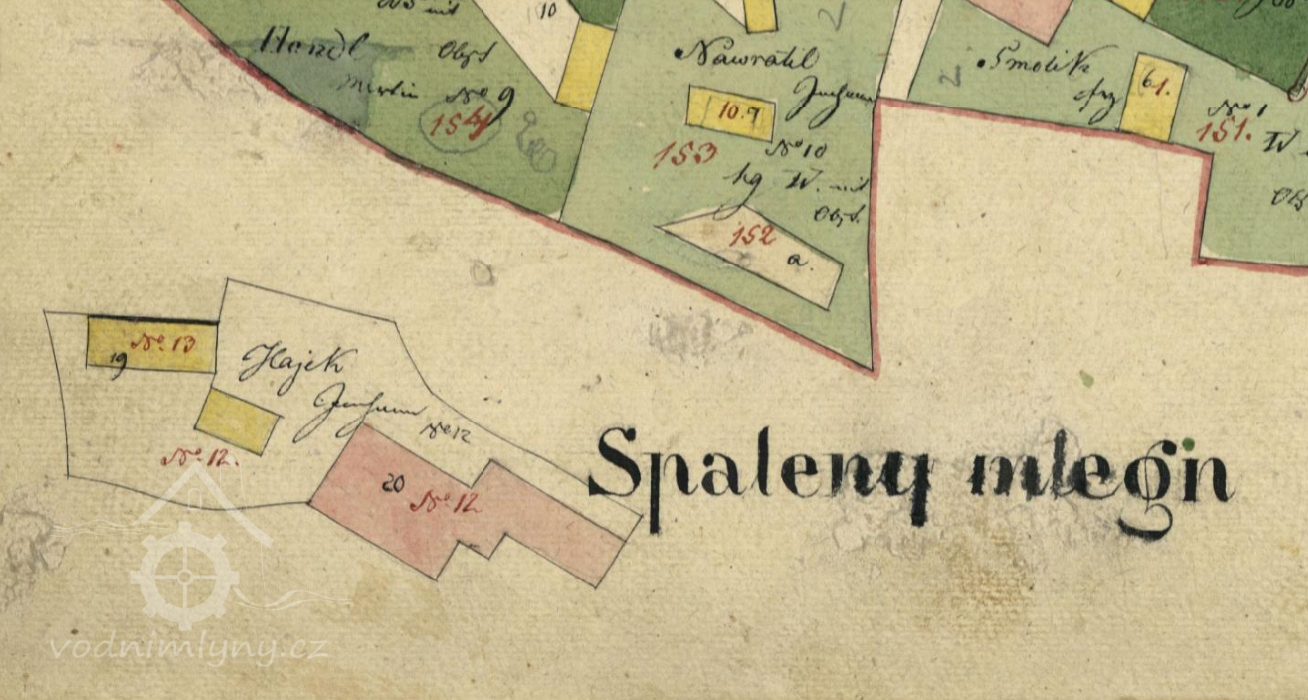 Mlýn je zachycen na mapě I. voj. mapování, kde je již označen jako verbrente tj. spálený, ve starších záznamech je však uváděn jako Podborskej mlejn, z toho by se dalo usuzovat, že někdy před polovinou 18. stol. mlýn vyhořel.