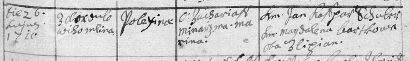 Další zmínka v matrice přímo k mlýnu je z 16. 1. 1714. Tehdy se Zachariášovi Millerovi (stejný člověk jako Zachariáš Minář/Kordula předtím) narodil syn Antonín. Mlýn je k tomuto datu zmiňován jako "Kordulů mlýn".
