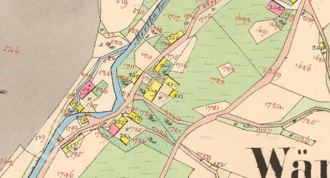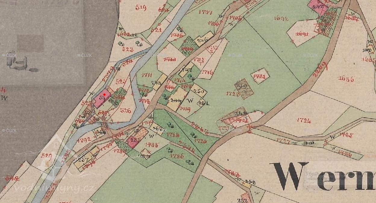 Mezi lety 1805 - 1842 proběhlo pozůstalostní řízení, kde je uveden zůstavitel Joseph Tinz, mlynář z Vernířovic čp. 119.