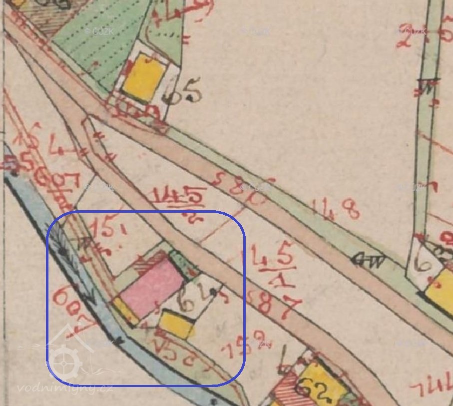 Popis1930: 1 kolo na svrchní vodu, hltnost 0,048 m3/s, spád 6 m, výkon 2,5 HP