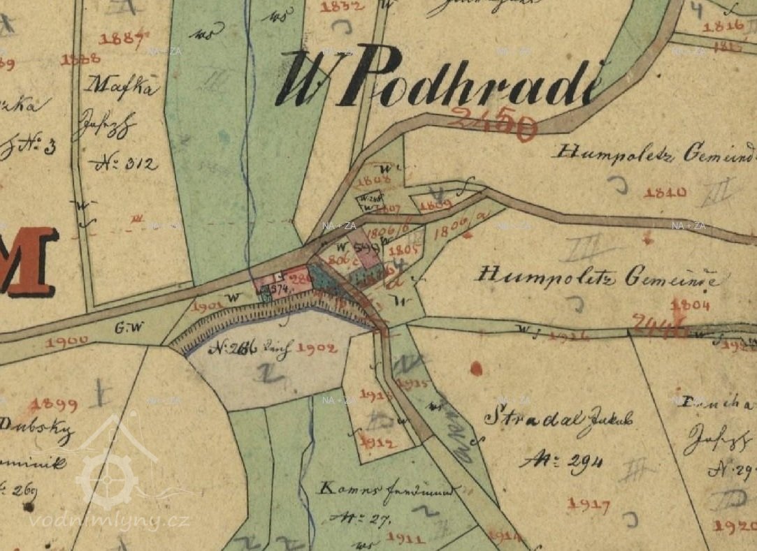 V Podhradě, pod hradem Orlíkem, stál původně mlýn, přeměněný později na barevnu. Roku 1892 ji zakoupil profesor na humpolecké hospodářské škole Čeněk Dobrovský a vystavěl zde tírnu lnu. Poté, co do podniku přistoupil Fridolín Závodský (1855–?), který provozoval tkalcovství v Rašínově ulici čp. 191, byla v roce 1897 zařízena na parní pohon. Po krátkém období lnářské konjuktury byla zastavena, a roku 1907 budovy zakoupil Antonín Klement Smrčka (1856–1928). V letech 1890–1908 postupně budoval tkalcovnu s parním pohonem v nedaleké Hradské ulici čp. 538, budova se poměrně autenticky dochovala dodnes. K původní patrové tírně v Podhradě čp. 286 jižně přistavěl dvoutraktový čtyřpodlažní objekt se schodišťovou věží, přizdobený typickým cimbuřím, v němž vedle tkalcovny zřídil také mykárnu a přádelnu. Z téhož období pocházejí úpravy hospodářských budov při vjezdu do areálu a především obytný dům na místě původního mlýna, dnes čp. 1521, pojatý v bizarním historizujícím stylu. Kolem roku 1913 pracoval pro Smrčku Robert Ehrlich (†1938), stavitel v Humpolci a později v Jemníkách u Slaného, kterého snad lze považovat za jejich autora. Od tradičních humpoleckých stejnokrojových lodenů Smrčka směřoval výrobu na oblekové a zejména zimníkové látky. K roku 1924, kdy se na chodu podniku podílel i Jaroslav Smrčka, disponoval dvěma tisíci spřádacích a třemi stovkami skacích vřeten, čtyřiceti mechanickými stavy a parní silou 300 HP. Po znárodnění se do areálu vrátila lnářská výroba – roku 1961 jej získal n. p. Českomoravský len a zřídil v něm strojírenský a opravárenský provoz, a původní budovu tírny zvýšil o tři podlaží, čímž dostal celek dnešní podobu. Donedávna sloužil spotřebnímu družstvu jako skladiště, na jaře 2014 byl nabízen k prodeji.