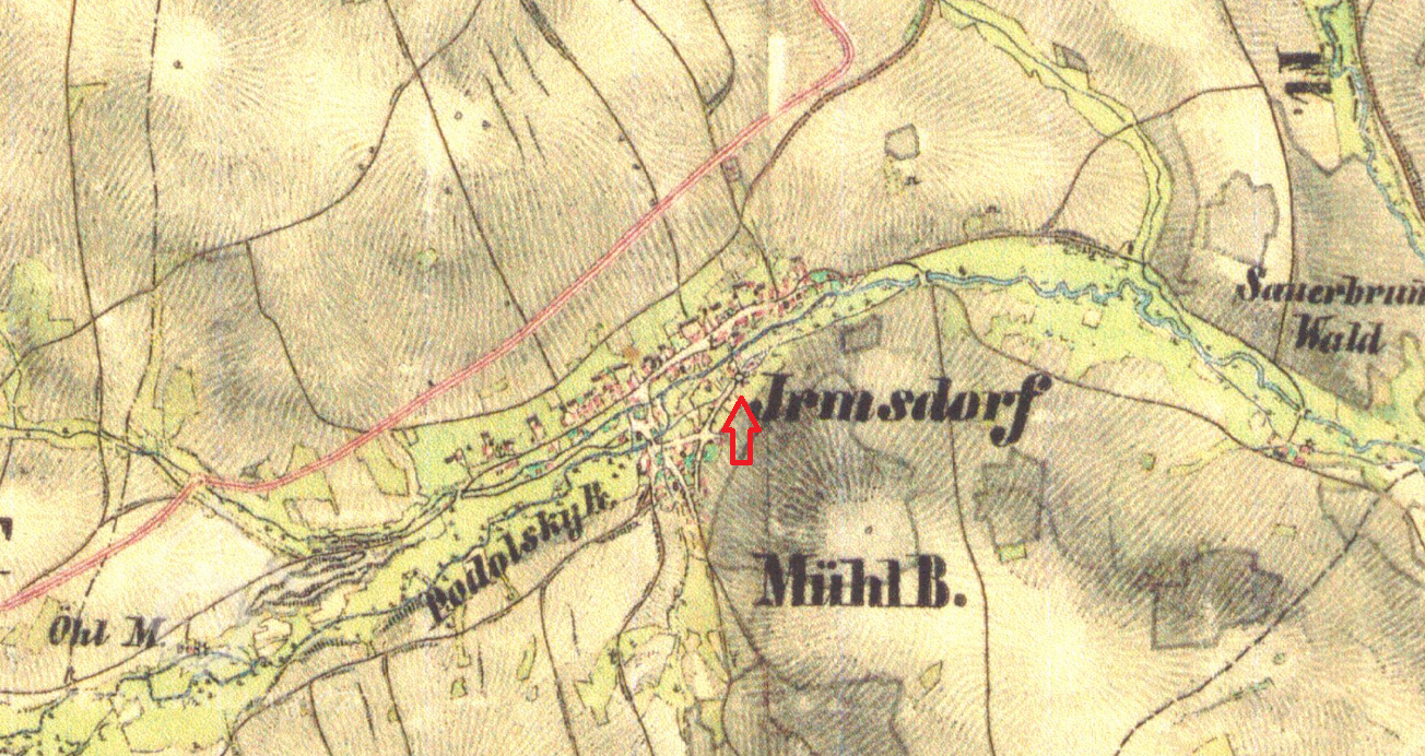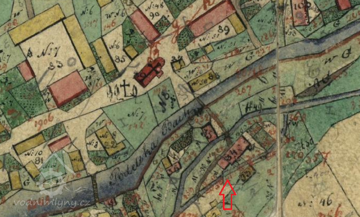 V roce 1838 mlýn vlastní Albert Franz, kterému patří také statek čp. 48 v sousedství kostela. Majetkové propojení spadá zřejmě již do roku 1806.