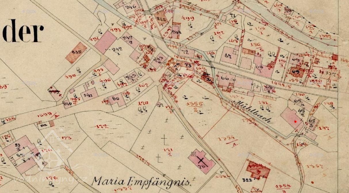 Mlýn je zachycen již na mapě I. voj. mapování.