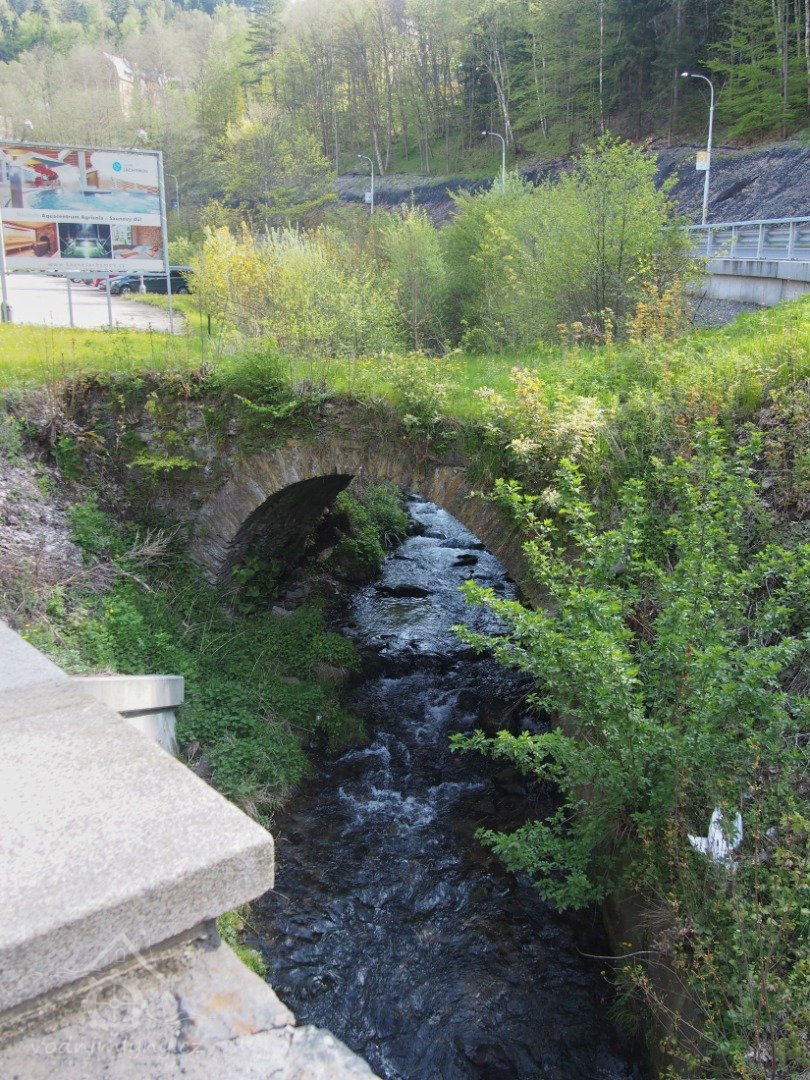 Další mlýn stával na místě dnešního parkoviště pod Radium palácem. Jediné, co se z moučného mlýna Karl Schneidenmühle dochovalo, je kamenný mostek vedoucí původně na dvůr mlýna.