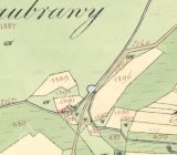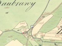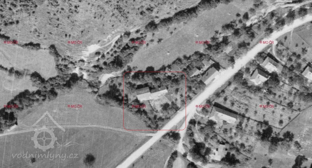 Na indikační skice z roku 1828 mlýn ještě nemá vlastní číslo popisné, čp. 75 se objevuje až po přístavbě sousedního stavení na mapě z roku 1877.