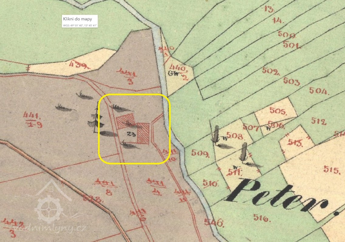 Mlýn s vodní elektrárnou a pilou Josefa Kühlbecka byl založen v polovině 19. století. Vodní elektrárna s pilou zchátrala po roce 1945.