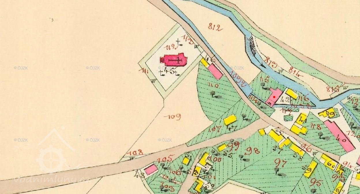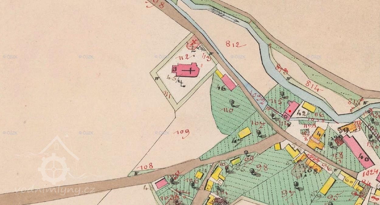 Mlýn je zachycen již na mapě I. voj. mapování.