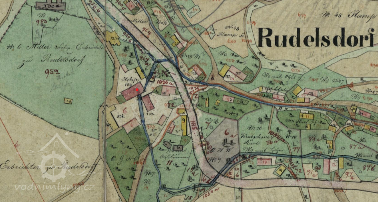 Mlýn poháněla voda jak z Klepáčovského, tak Rudoltického potoka. Zbytky náhonu lze v terénu stále rozeznat.