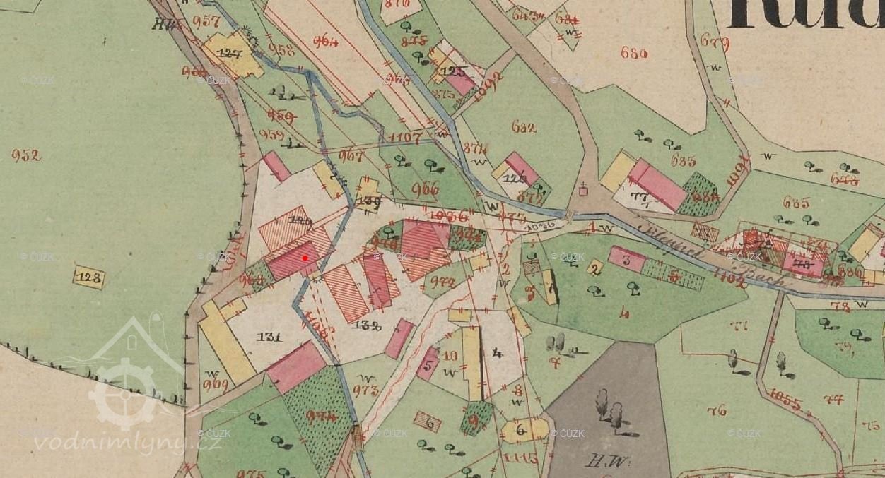 PopisV roce 1930 zde funguje Francisova turbina s průtokem 0.154 m3/s, spádem 3.8 m o výkonu 5 HP.