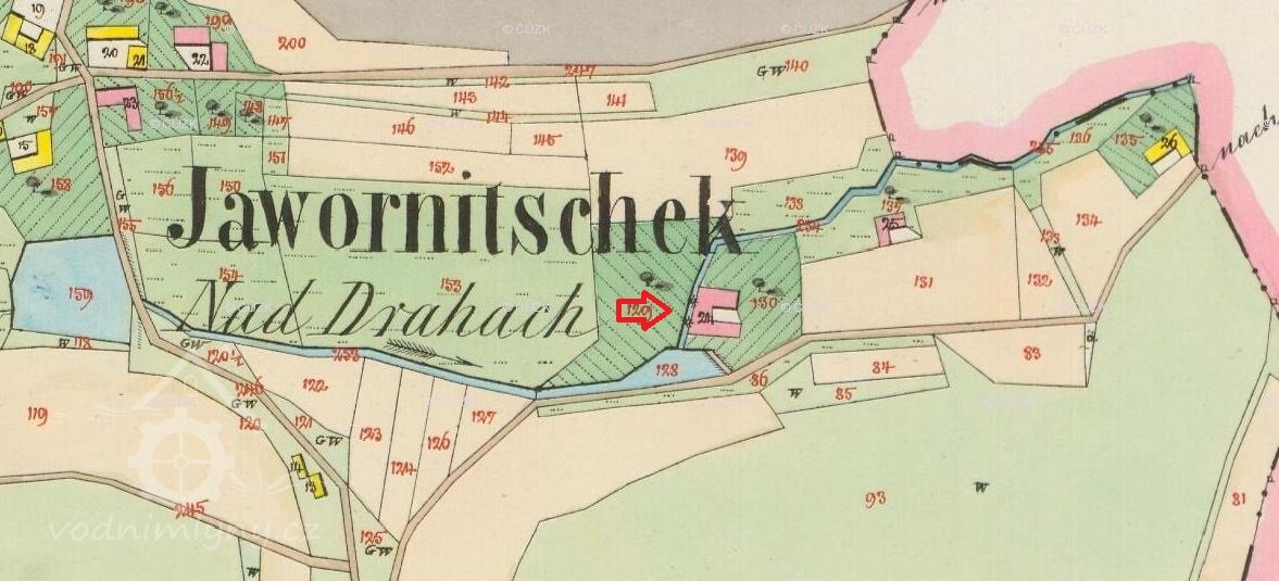 1930: 1 kolo na svrchní vodu, hltnost 0,026 m3/s, spád 5,8 m, výkon 2 HP