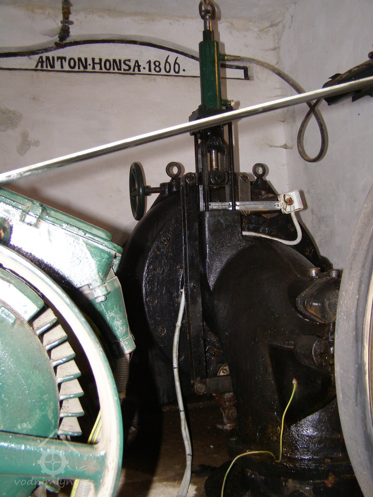 PopisFrancisova Horizontální Turbína z roku 1946, celá viditelná, 12 HP, 330 l/s, 5,2m spád, Výrobce Union České Budějovice