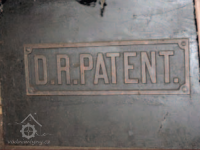 Štítek Deutsches Reichspatent, 2013, © Vodní mlýny na Frýdecko-Místecku, (Prvky na obrázku: značka výrobce na pomocném motoru)