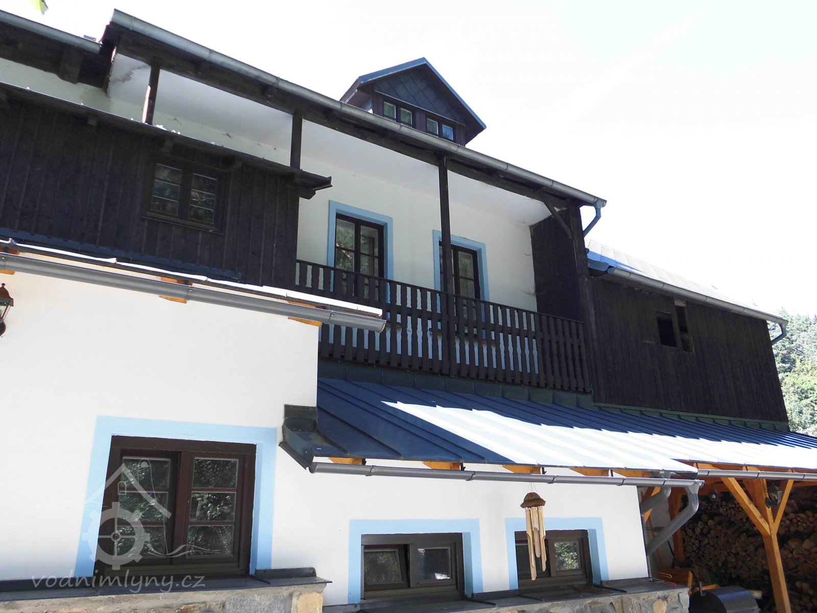 vodní kolo s výstrojem, 2 transmise s řemenicemi, 1 dynamo s instalací