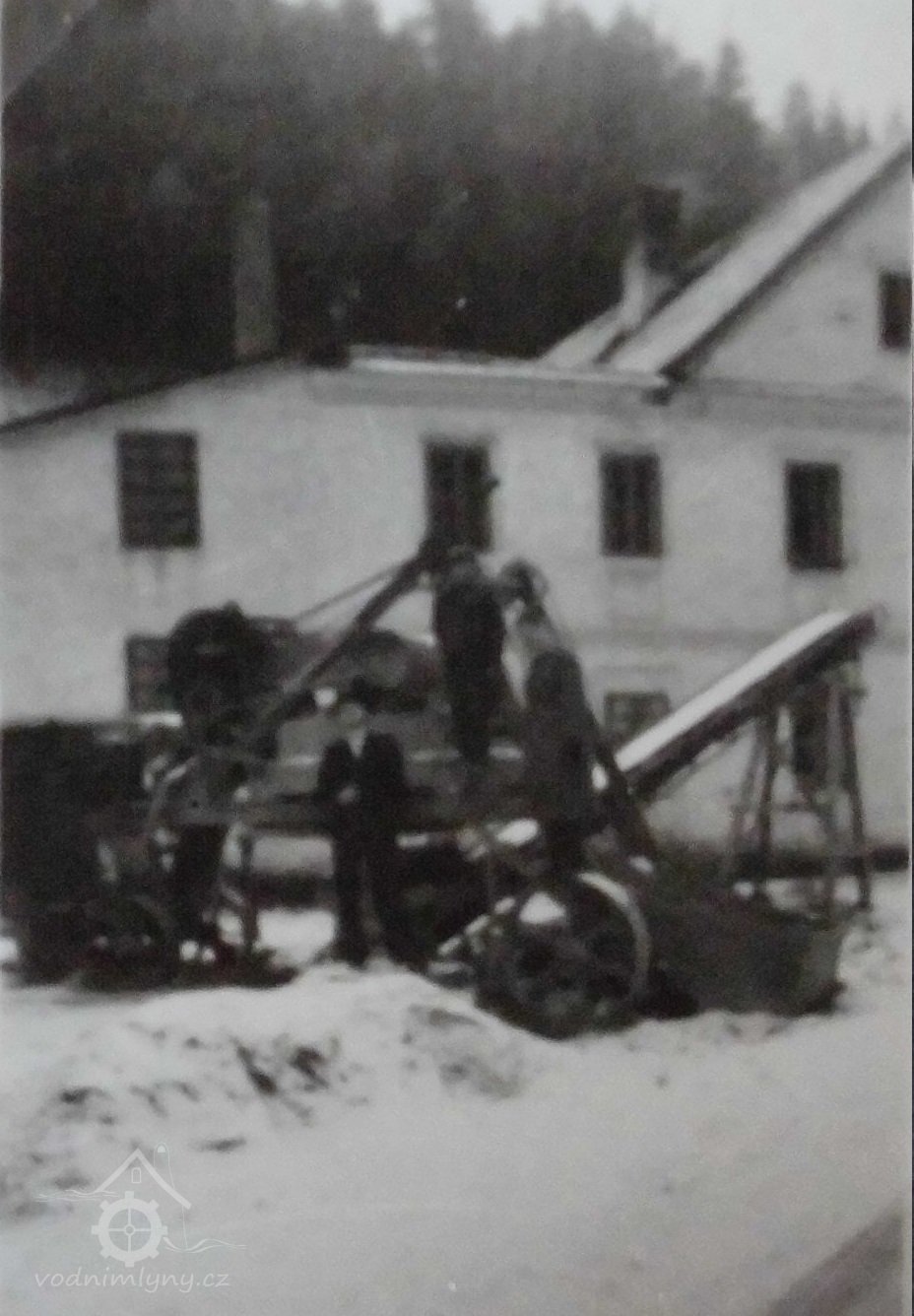 Roku 1793 je majitelem tohoto mlýna Josef Fric, který povinen byl vrchnosti odsypávati každoročně 89 a tři čtvtě měřice žita a 120 kusů kmenů na prkna pořezati. Za to obdržel od hraběnky Marie Rebeky z Hohenembsu, provdané z Harrachů povolení, že může mimo pily ještě třetí složení zříditi a k tomu potřebné místo z panského gruntu použíti za roční poplatek 30 krejcarů a bude povinen tu cestu podle jalového potoka v dobrém stavu držeti a taras na vlastní svůj náklad stavěti.