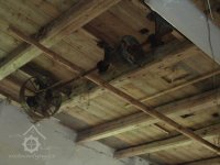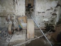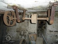 transmise v turbínovém domku, 2014, © Veselý, (Prvky na obrázku: transmise, řemenice, převody)
