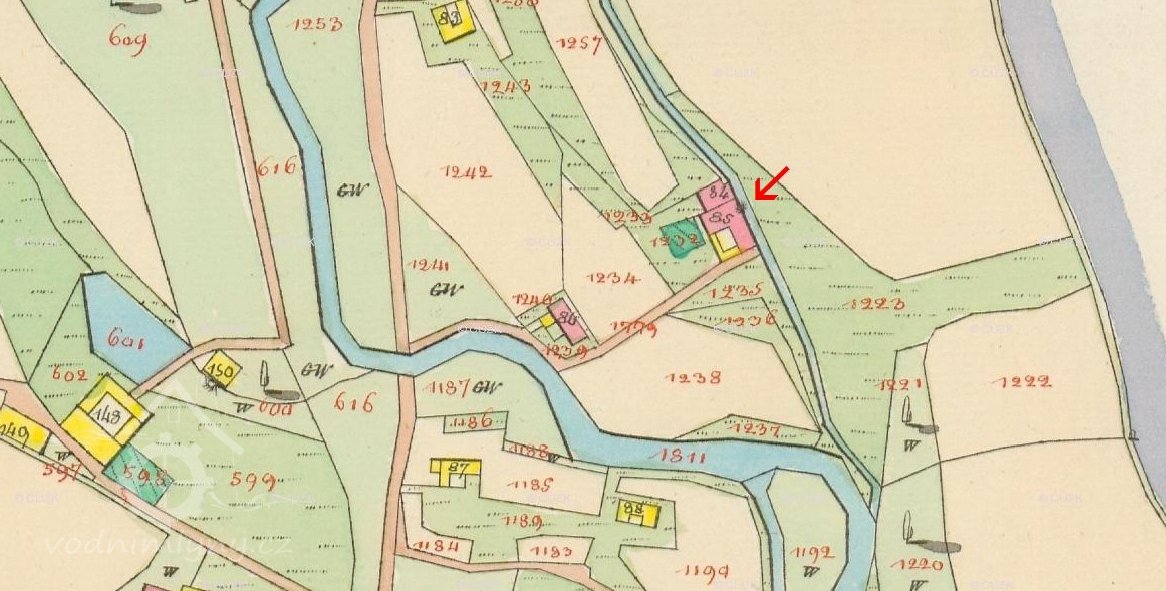 Indikační skica, výřez, 1839, © viz http://archivnimapy.cuzk.cz/