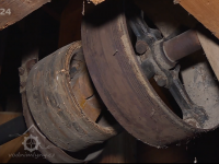 Detail převodu, 07 2022, © Události Ostrava, (Prvky na obrázku: transmise, řemenice, převody)