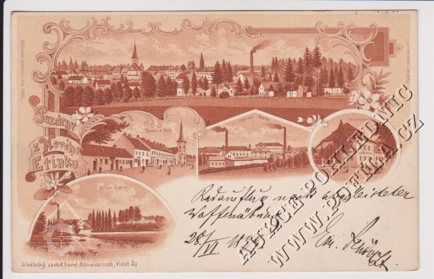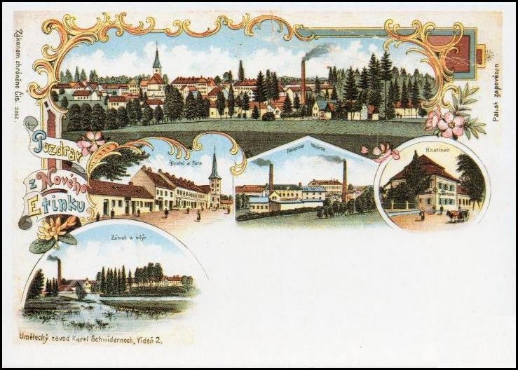 Historie komínu pod mostem přes řeku Kamenici sahá do roku 1860 kdy vznikla v tehdejším Novém Etinku první česká továrna na houně, haleny a koňské přikrývky. Jepičí život této fabriky ukončila nezaplacená státní zakázka pro Rakousko-Uherskou armádu. V roce 1866 po prohrané bitvě u Hradce Králového se monarchie dostala do velký ekonomických problémů. Továrník pan Svobodný po získání velké zakázky si vzal úvěr, ale po odmítnutí státu vyrobené zboží převzít a hlavně ho zaplatit se tato malá fabrika po roce 1866 dostala do krachu. Čapí hnízdo v koruně komínu se tak může pyšnit 140-letou tradicí.