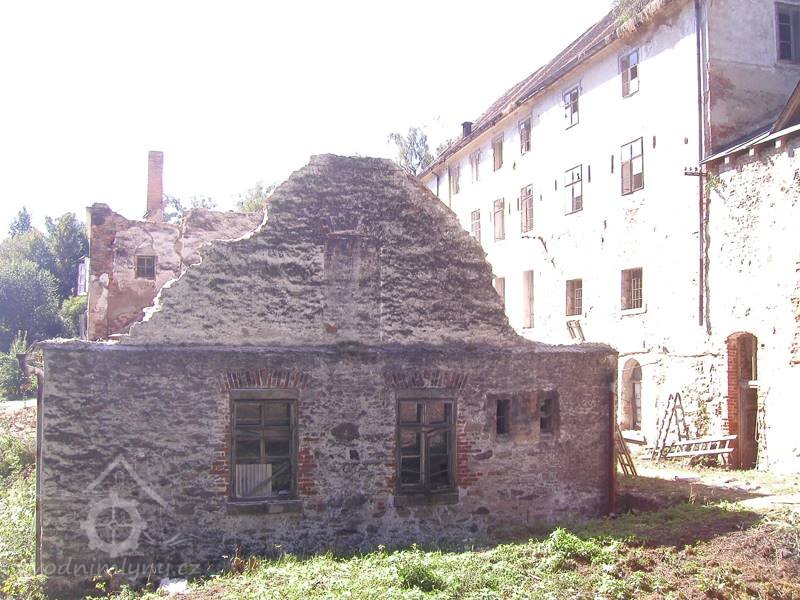 Katalogové číslo v dtb. Památkový katalog: 1000147484_0002(barvírna).Důvod či způsob zániku: V těsném blízkosti mlýna situovaný komplex budov barvírny a sušárny textilního materiálu vyjmenovaný na evidenčním listu z roku 1969 se již v době zápisu nacházel ve špatném stavebně technickém stavu. Vlivem dlouhodobé neúdržby celého areálu, který byl zapsán i na seznam nejohroženějších památek, se stav stále zhoršoval. V historicko-architektonickém průzkumu parního mlýna v Telči zpracovaném v roce 2002 byl objekt spolu s bývalým hospodářským objektem doporučen k asanaci. Z důvodu zcela havarijního stavu objektu, jehož rekonstrukce by byla nepřiměřeně nákladná a neumožňovala by ani zachování většiny stávajících degradovaných konstrukčních prvků, byla v roce 2004 doporučena demolice objektu a její nahrazení novostavbou hmotové kopie. K té již ale nedošlo a i celková rekonstrukce areálu se před několika lety zastavila. Povolení k odstranění stavby bylo stavebním úřadem vydáno v srpnu 2004 a následně byla započata vlastní demolice. V současnosti se na místě nachází již jen torzo severního průčelí lemující odtokovýkanál.
