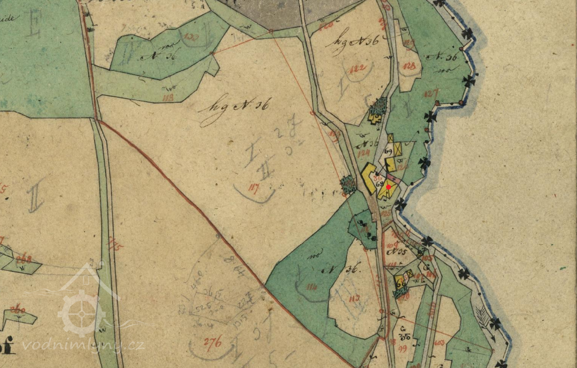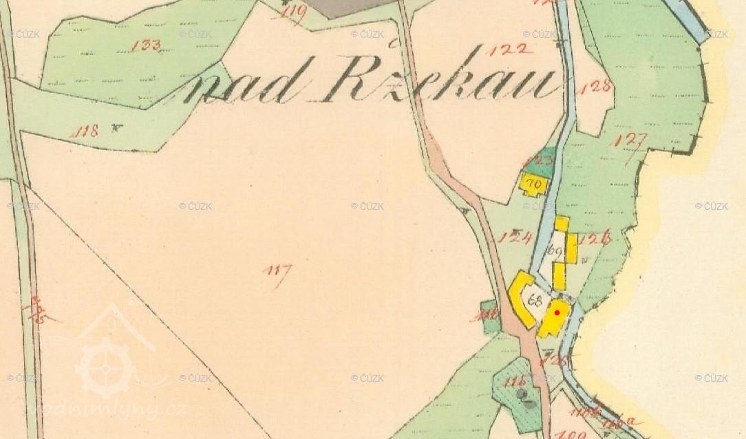 PopisV roce 1930 zde bylo kolo na svrchní vodu s průtokem 0.26 m3/s, spádem 3.45 m a výkonem 10.3 k.