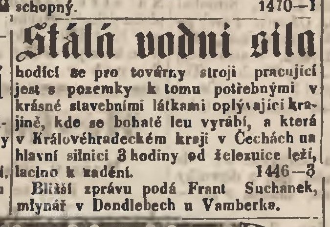 1.2.1744 Antonín Vít hrabě z Bubna a Litic prodává mlýn i s pilou Janu Hájkovi a Josefovi Navrátilovi za 1000 zl. ve stříbře