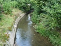 Náhon protéká mezi velkými budovami, v době návštěvy nebyla patrná činnost žádných zařízení.