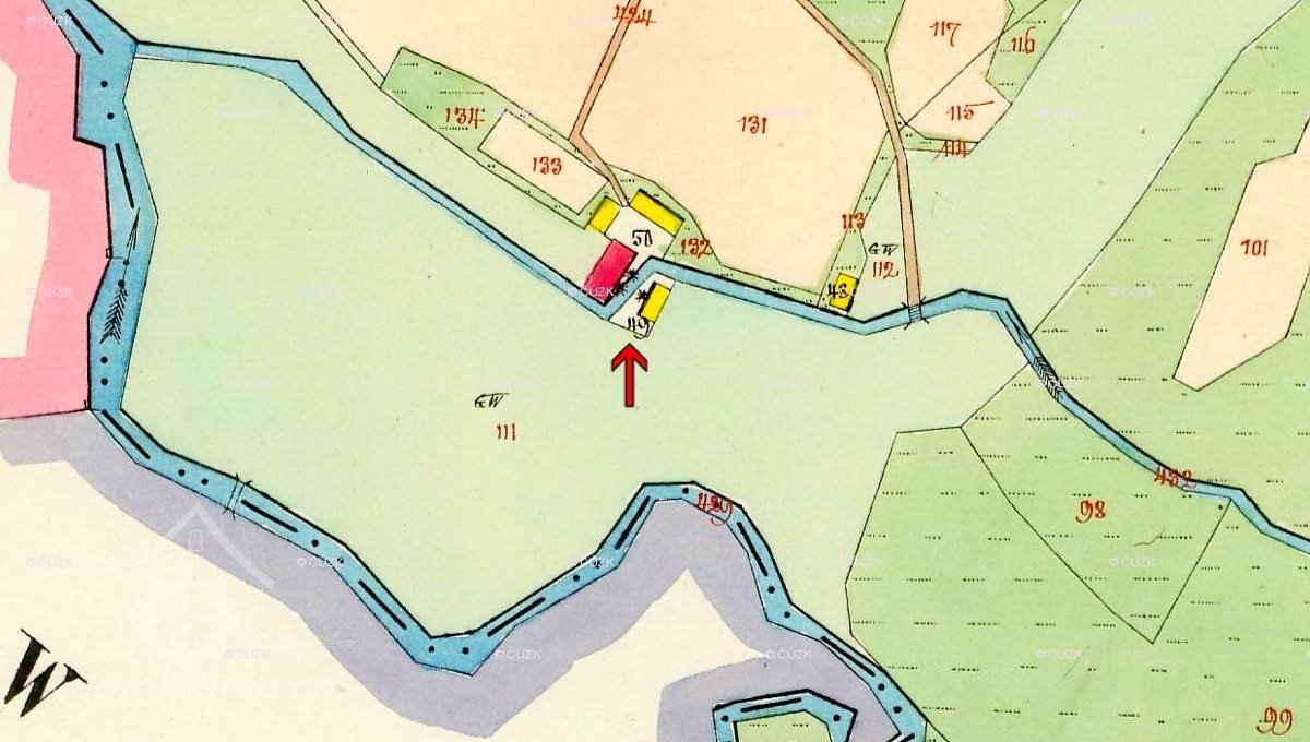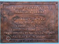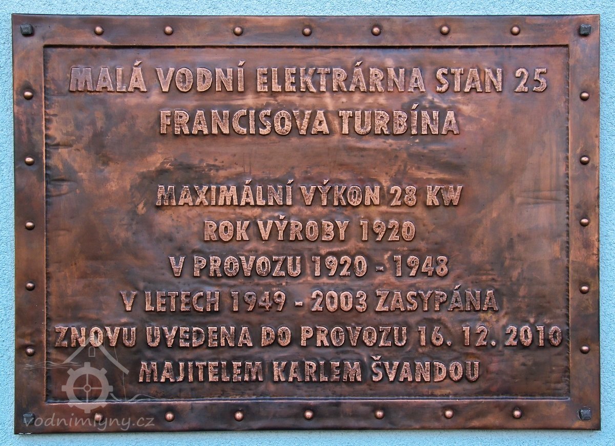 V r. 1930 zde byla Francisova turbína, průtok 0,642 m3/s, spád 4,5 m, výkon 29,7 k.