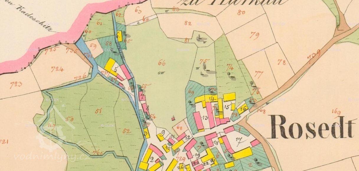 Mlýn je zachycen již na mapě I. voj. mapování.