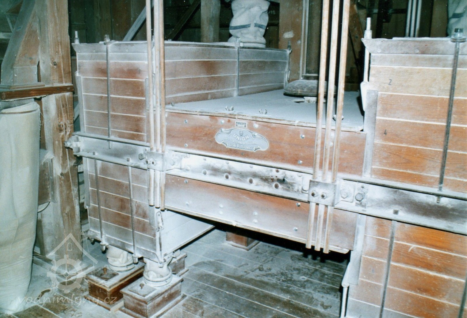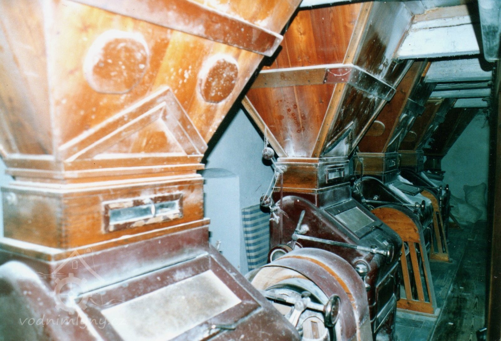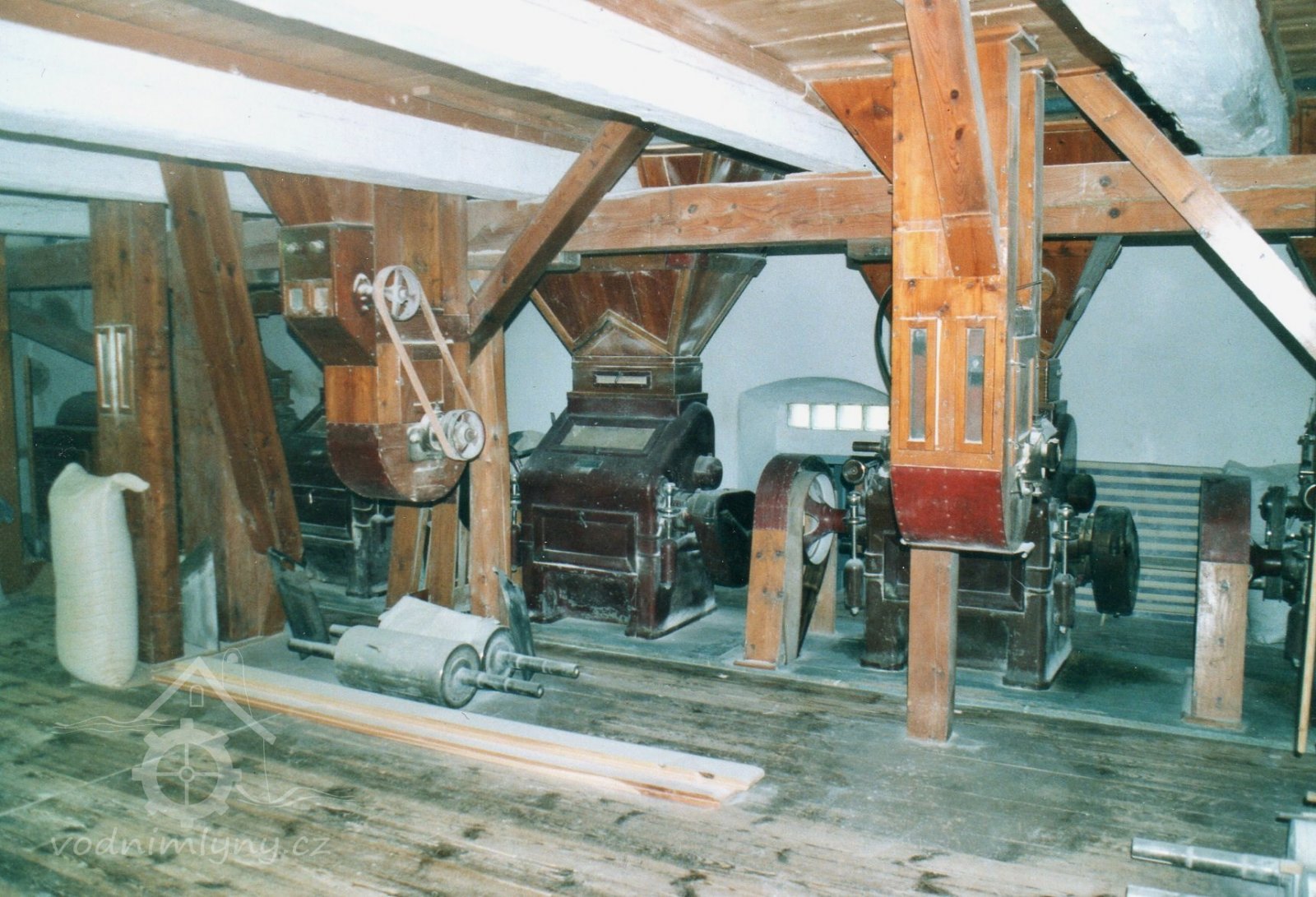Strojní zařízení: turbína, spodní transmise hlavní - uchycená ložiskovými věšáky u stropu, hranolový vysévač, loupačka, válcové mlecí stolice, šrotovník, pytlovací lávky, míchačka na mouku, rovinné vysévače, reforma, vrchní transmise, kapsové dopravníky, šnekové dopravníky, filtry, zásobníky