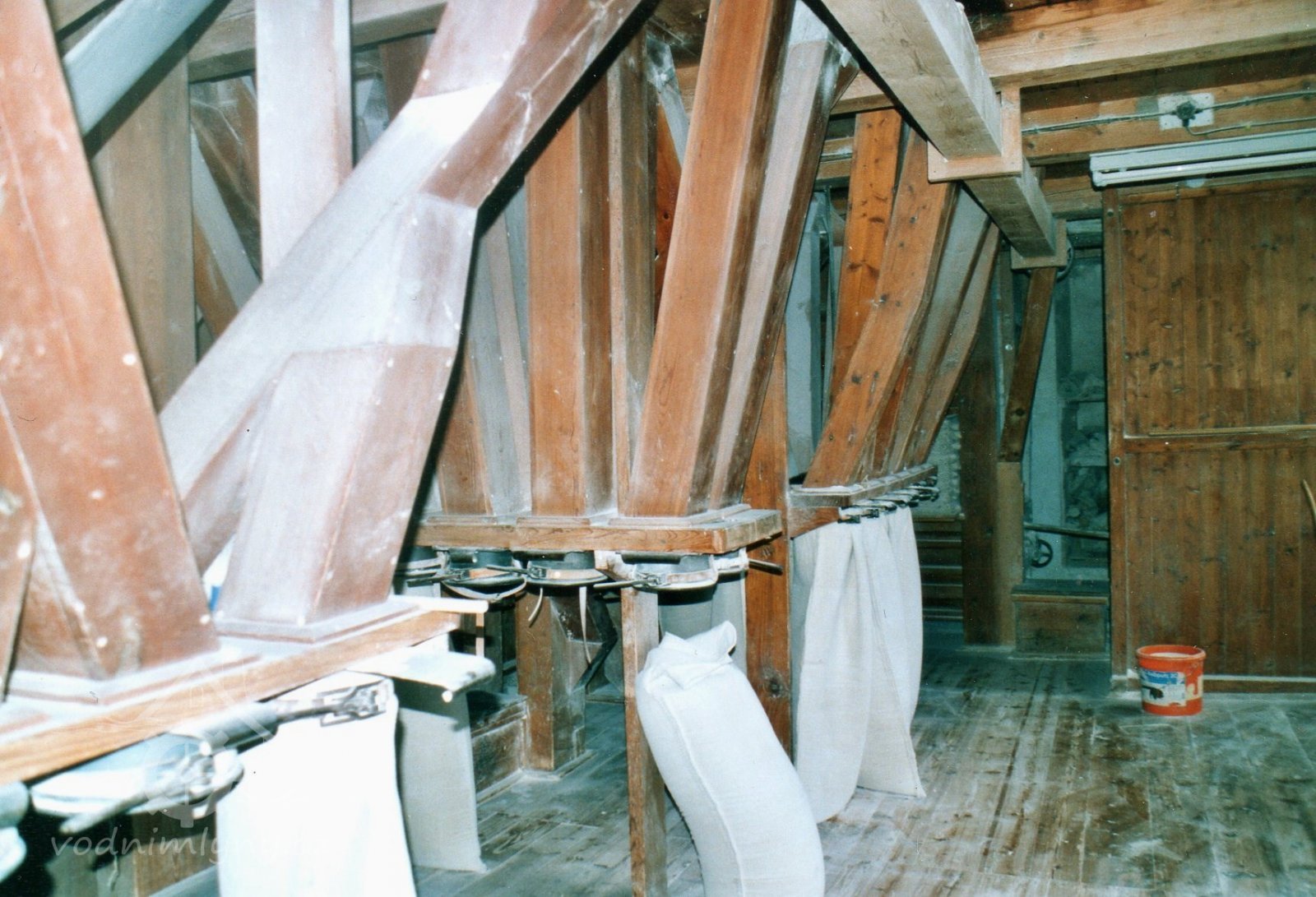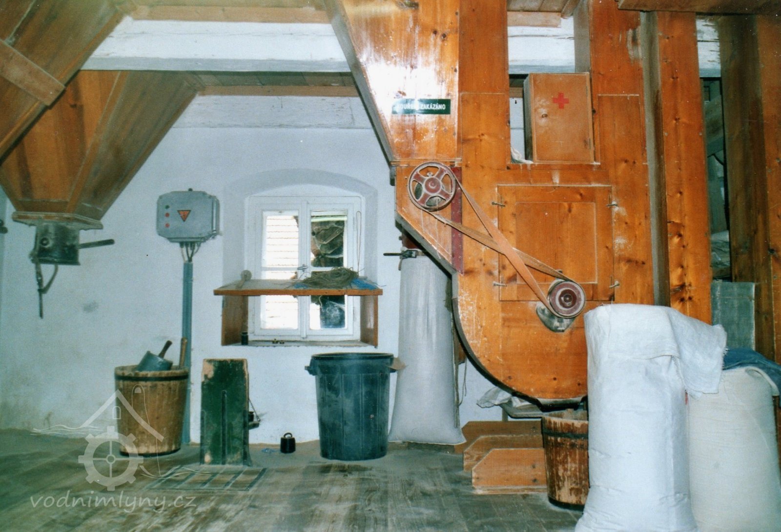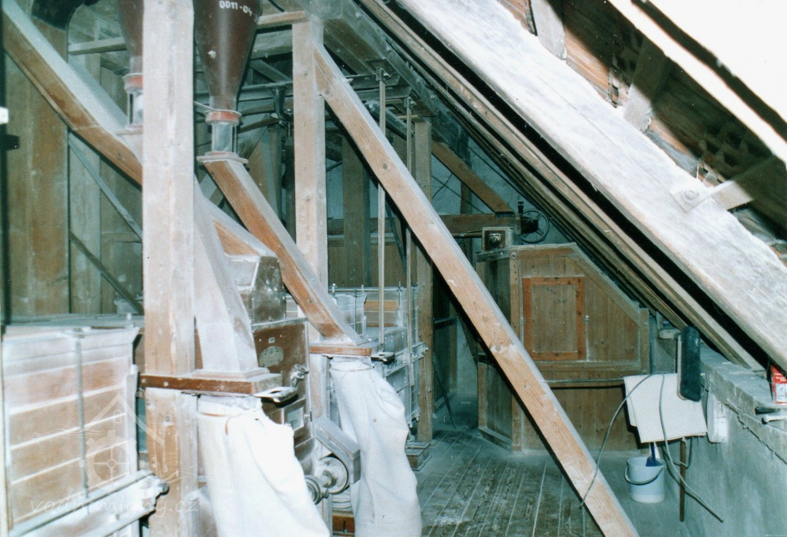 Strojní zařízení: turbína, spodní transmise hlavní - uchycená ložiskovými věšáky u stropu, hranolový vysévač, loupačka, válcové mlecí stolice, šrotovník, pytlovací lávky, míchačka na mouku, rovinné vysévače, reforma, vrchní transmise, kapsové dopravníky, šnekové dopravníky, filtry, zásobníky