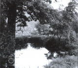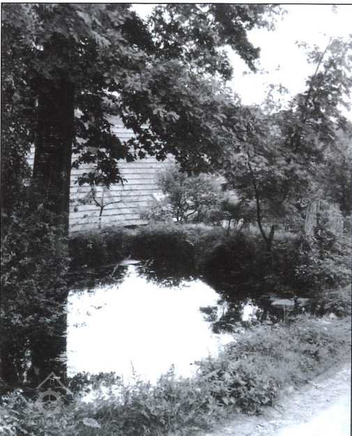 mlýnská nádržka je položená tak vysoko, že její hladina je nad úrovní okapů bývalého mlýna.